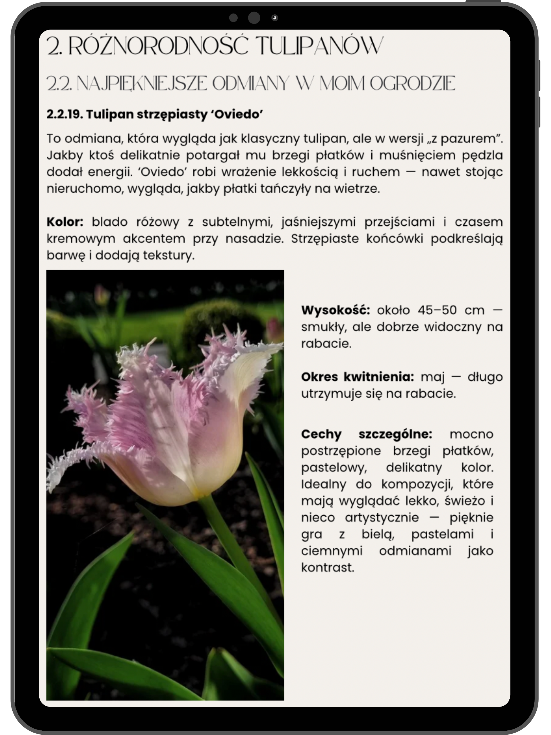 1. Szczegółowe porady, inspiracje, opisy i zdjęcia tulipanów – dowiesz się, jak sadzić, pielęgnować i komponować tulipany, aby Twój ogród rozkwitał pełnią barw.